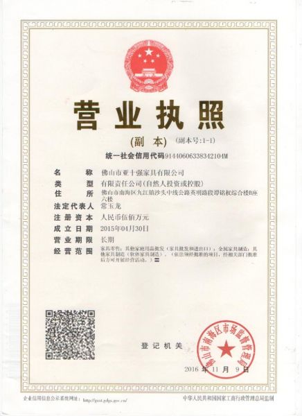 佛山市亚十强家具有限公司网站由中国建材招标网制做维护。内容真实性及解释权归佛山市亚十强家具有限公司负责。