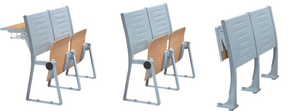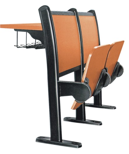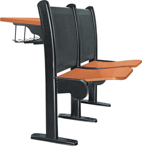 e. 内藏折叠式写字板,写字架原材料采用铝合金,写字板采用三聚氰氨板,可收藏于扶手脚内,合理利用使用空间。